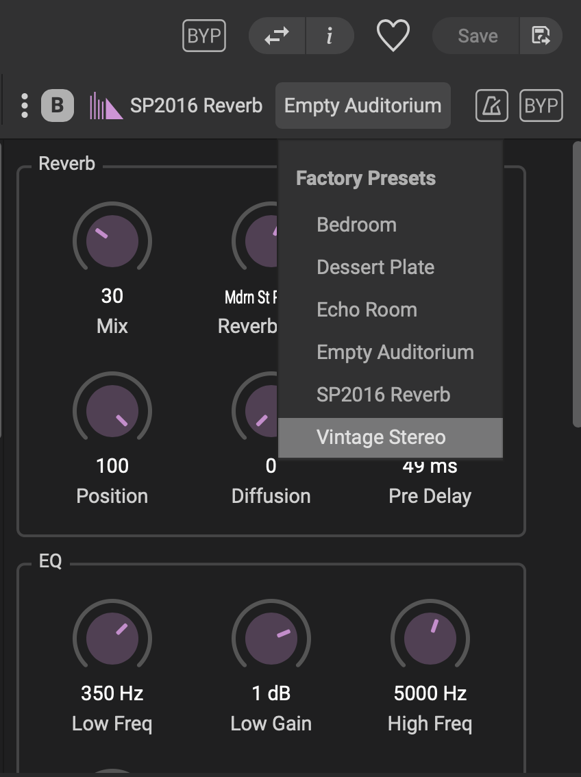 Fig. 10.7 SP2016 Reverb’s preset dropdown menu for Preset B.¶