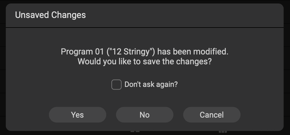 Just like the pedal, you will see an asterisk whenever any parameter is changed next to to Program’s name indicating unsaved changes.