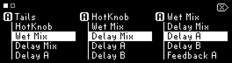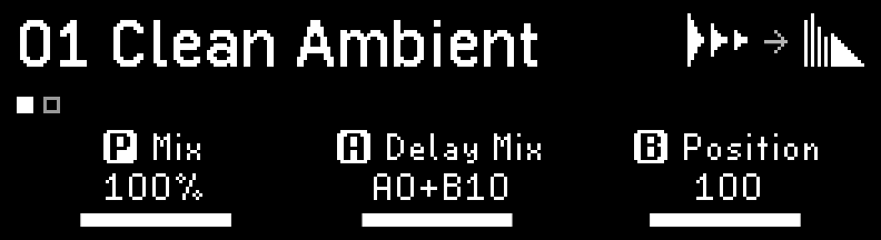 Quick Knob 2 is assigned to the Delay Mix parameter of Preset A