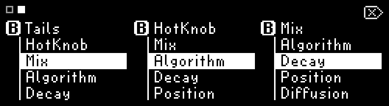 Any combination of Quick Knob assignments can be made to suit your Program or performance needs. You can map all of the Quick Knobs to the Parameters of Preset A or B, or mix things up between both Preset and Program-level parameters.