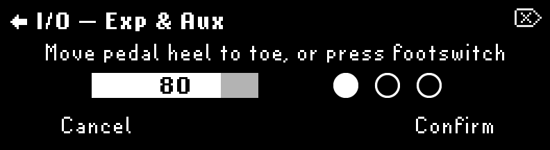 Fig. 7.9 This example shows one expression pedal and one aux switch being calibrated.¶